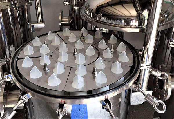 工作原理是一種壓力式過濾裝置。在密閉筒體內(nèi),是根據(jù)不同行業(yè)需求采用不同材質(zhì)濾芯作為過濾元件,垂直裝在濾板上組成,原液由進料口流入筒體,經(jīng)過每一支濾芯由外向內(nèi)排出,微小雜質(zhì)顆粒被攔截在濾芯表面。設(shè)計結(jié)構(gòu)獨特,整個過程操作節(jié)能、密閉操作、精密澄清的固液分離設(shè)備,裝卸濾芯十分方便,濾筒清洗方便簡單。